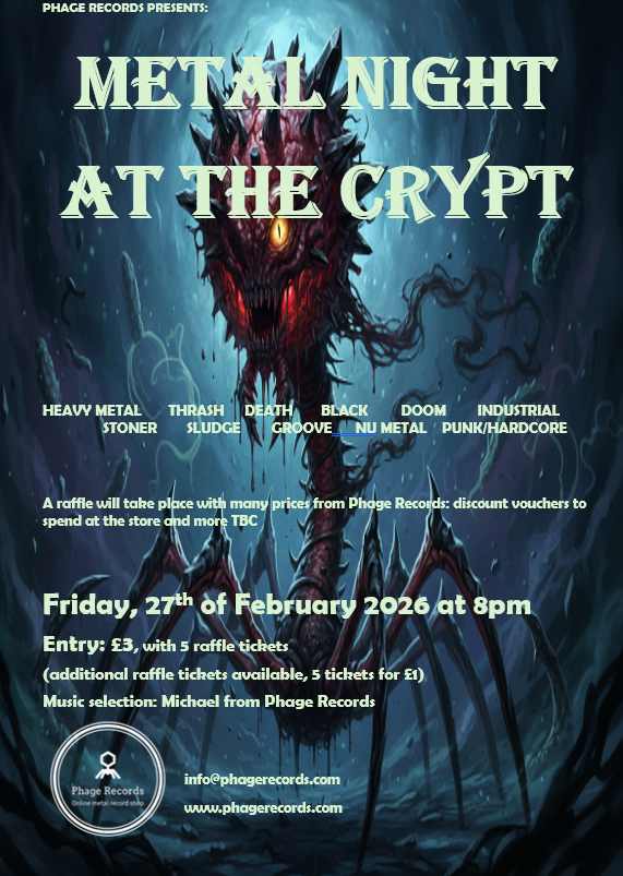 Stay up-to-date with the latest events hosted by Phage Records! We're excited to bring you a variety of events, from metal nights to local gigs. Check back often for new announcements.